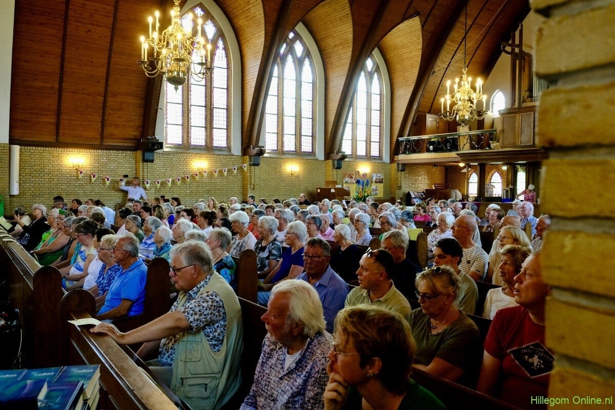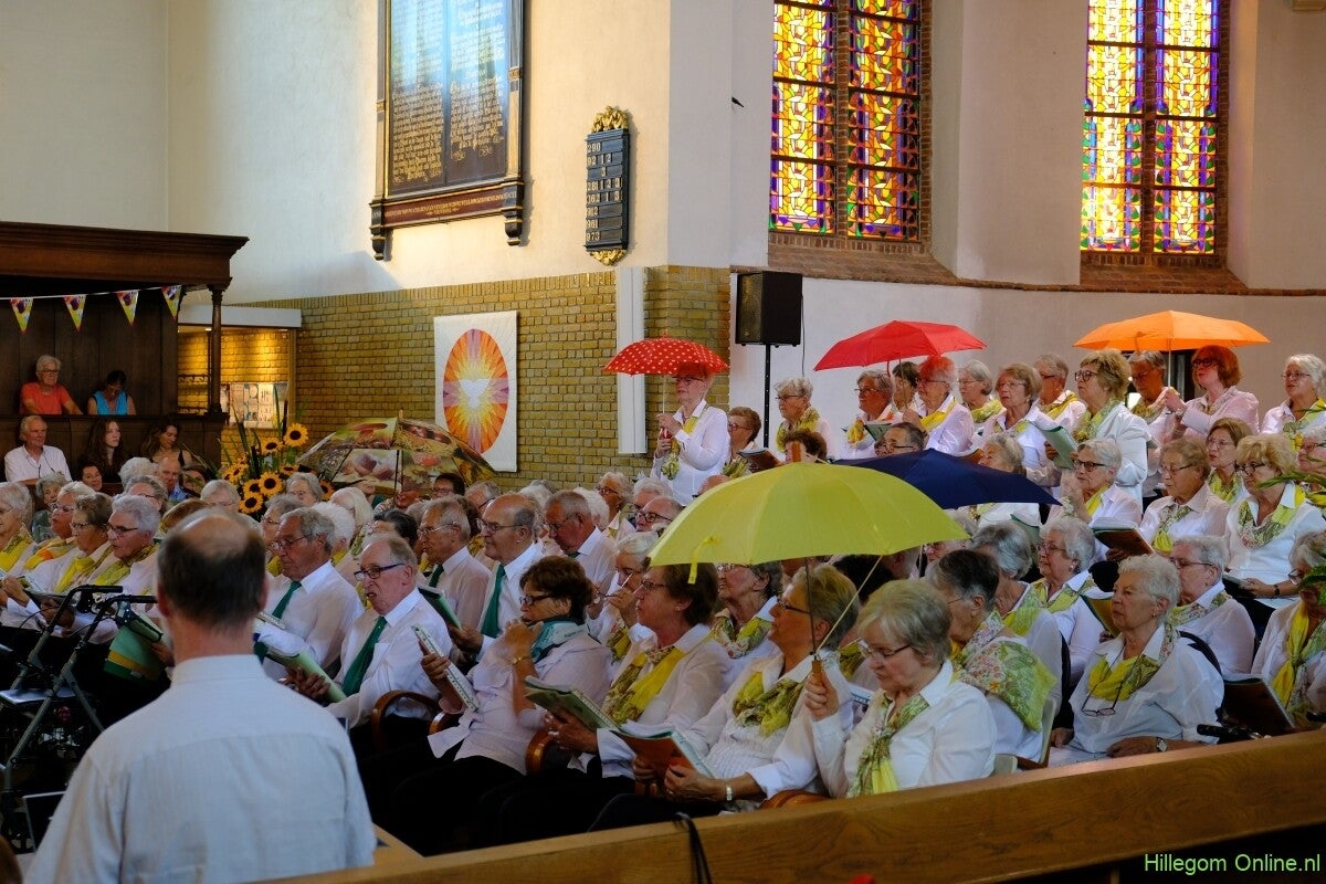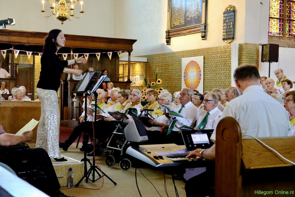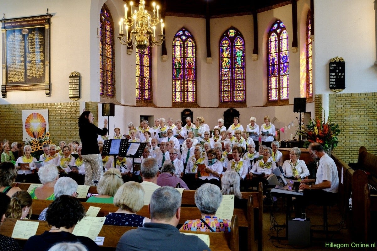 Hillegom - Ondanks de hitte buiten was de Maartenskerk vrijwel uitverkocht voor het concert van het Seniorenkoor Eigen Wijs. Zij zongen ruim anderhalf uur een divers repertoire voor het meezingende publiek. Er werden ook nog diverse leden van het koor in het zonnetje gezet. Na afloop was er een borrel.